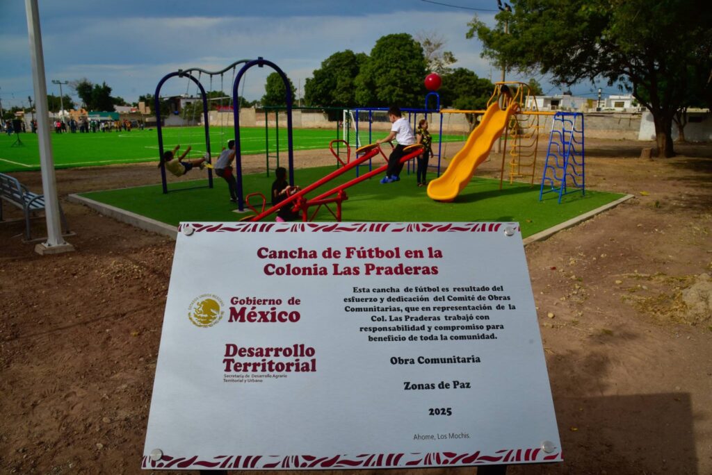 Con una inversión de 6 y medio millones de pesos, y en un tiempo récord de 90 días, se recuperaron espacios públicos en el sector Las Praderas y Las Cañas de Los Mochis, y se construyeron canchas deportivas, gimnasio al aire libre, y juegos infantiles para los niños de ese populoso sector, a través del programa Vertiente de Obras Comunitarias de la Secretaría de Desarrollo Agrario Territorial y Urbano (SEDATU), del Gobierno Federal.