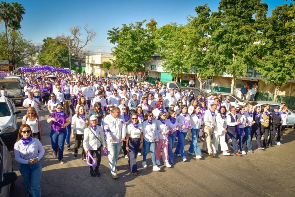 En el marco de la conmemoración del Día Internacional de las Mujeres, el Ayuntamiento de Ahome realizó la marcha “Derechos, Justicia y Acción por y para todas las mujeres y niñas”, encabezada por el Presidente Municipal, Antonio Menéndez de Llano Bermúdez, acompañado de su hija Marissa Menéndez de Llano Chávez, Presidenta del Sistema DIF Ahome, así como de funcionarias, trabajadoras del Ayuntamiento y diversas mujeres de la sociedad civil que se sumaron a esta movilización.